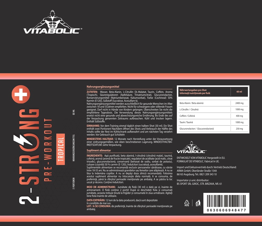 Shot pre-workout Tropical 2 Strong, 60 ml, Vitabolic [63060948477]