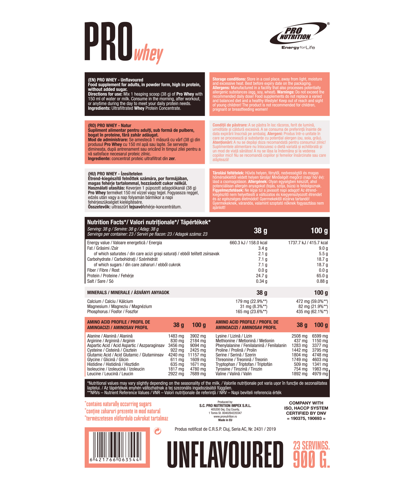 Proprietati:- concentrat proteic din zer cu puritate ridicata, fara indulcitori, arome si zahar adaugat, ideal pentru cei care doresc o sursa simpla si eficienta de proteine;