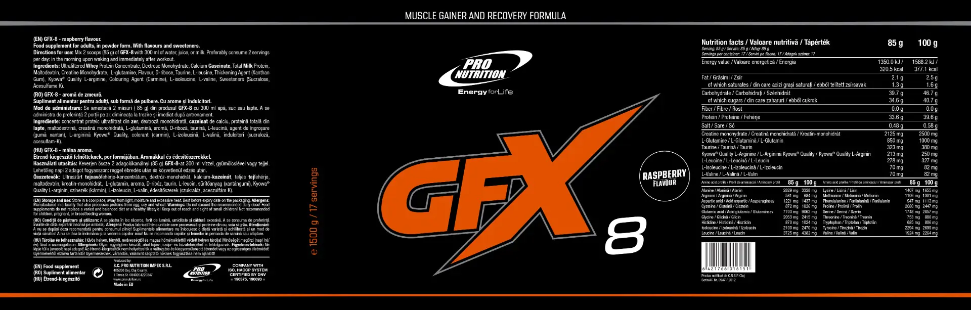 - GFX-8 a fost special creat pentru sportivi, care doresc o crestere rapida in masa musculara, dar nu numai;