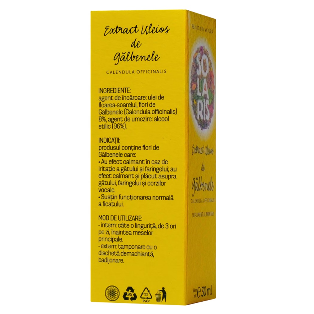 Agent de incarcare: ulei de floarea-soarelui, flori de Galbenele (Calendula officinalis) 8%, agent de umezire: alcool etilic (96%).