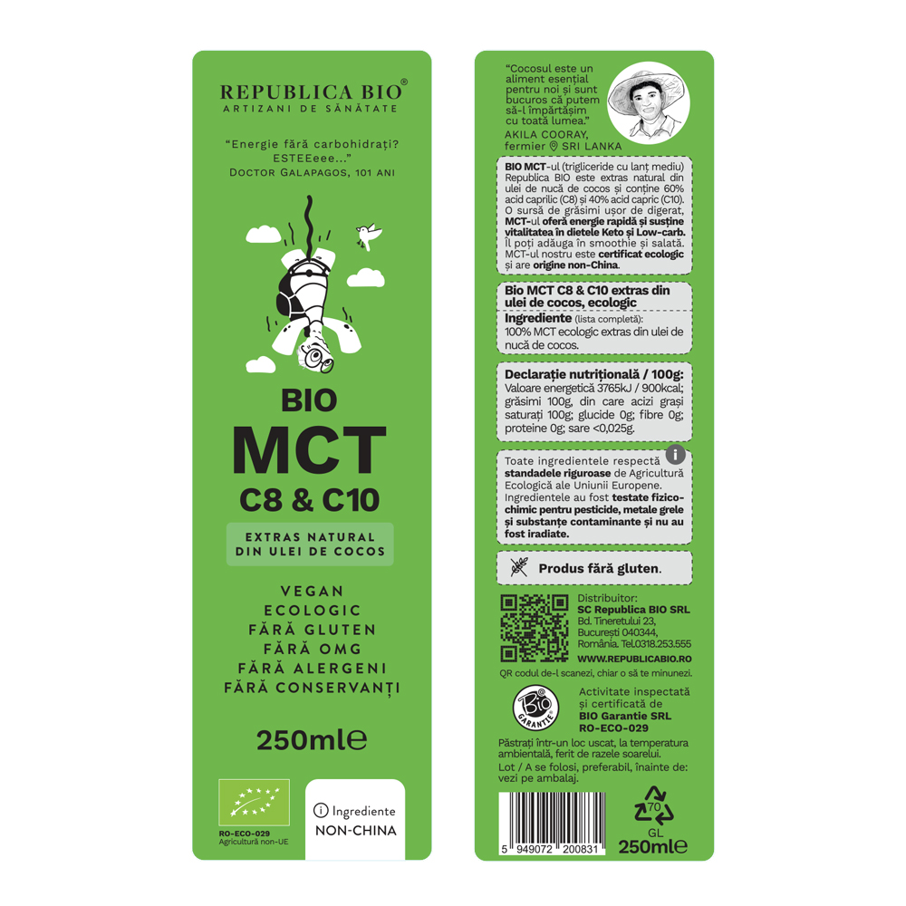 Ingrediente:100% MCT ecologic extras din ulei de nuca de cocos.