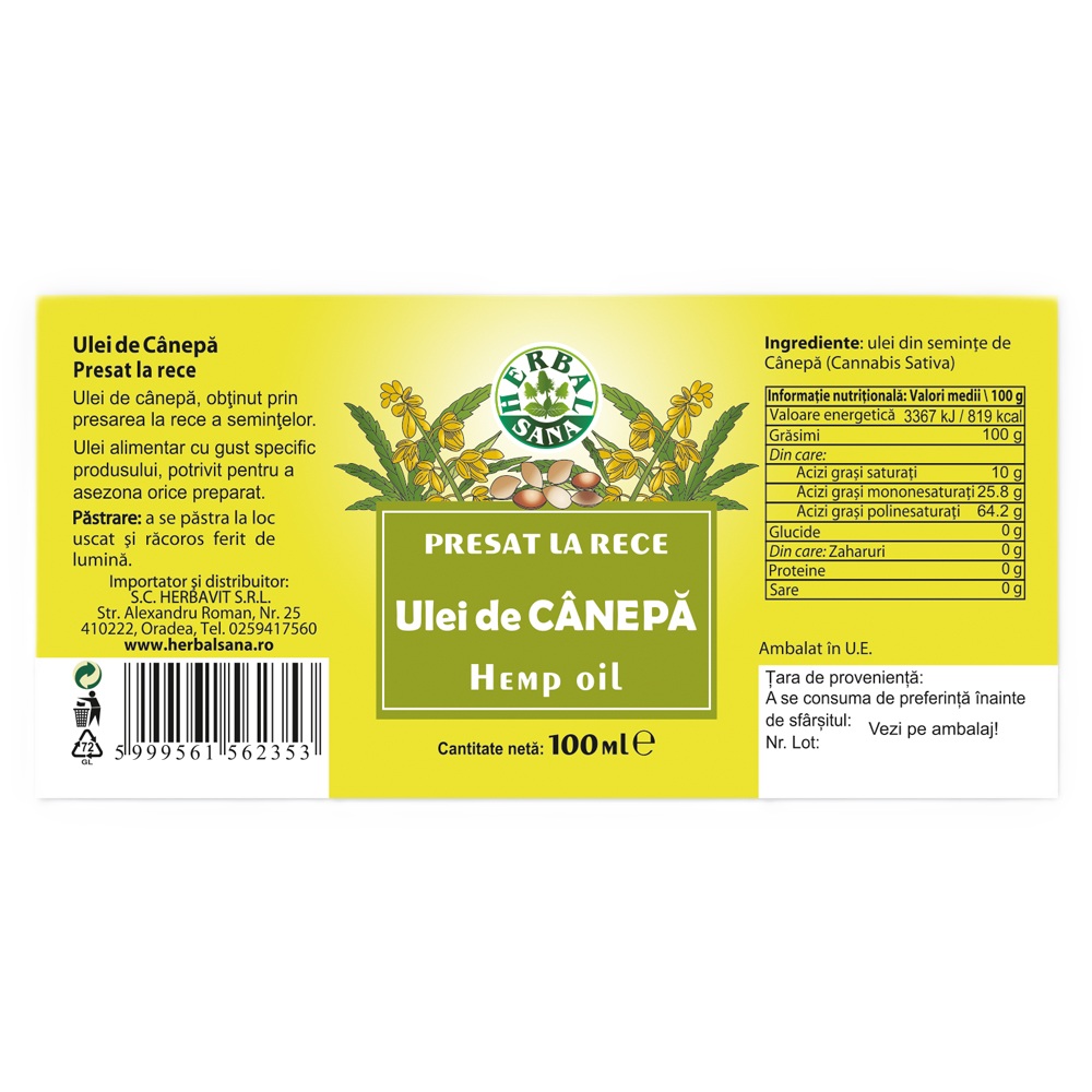 Ulei din seminte de canepa (Cannabis Sativa).