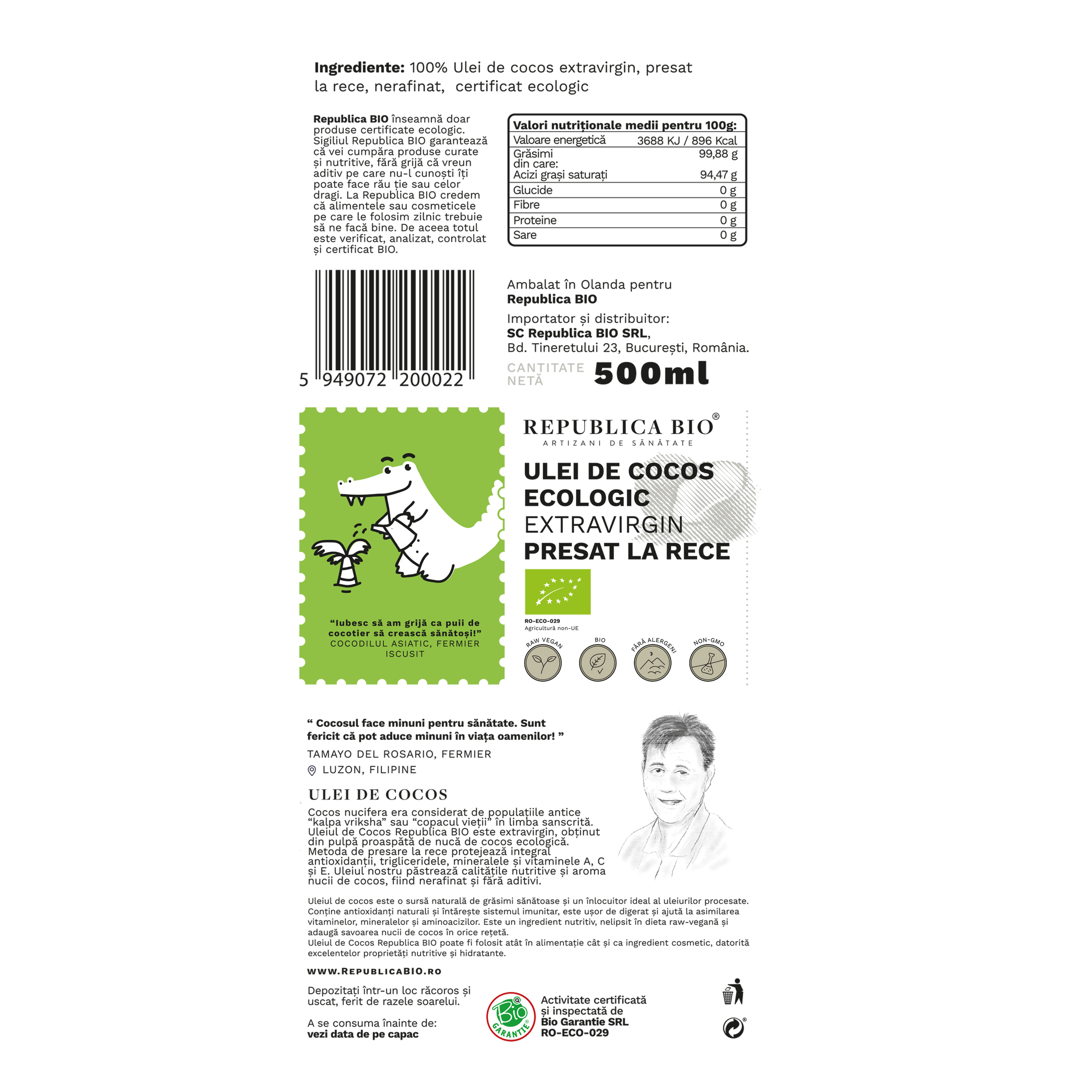 Informatii utile despre Ulei de cocos Bio extravirgin, presat la rece, 500 ml, Republica Bio gasiti in articolele: Beneficiile cocosului. Ulei de cocos Bio extravirgin presat la rece 500 ml Republica Bio (este un produs raw, vegan, fara alergeni) dieta si nutritie:dieta autoimuna (aip), .