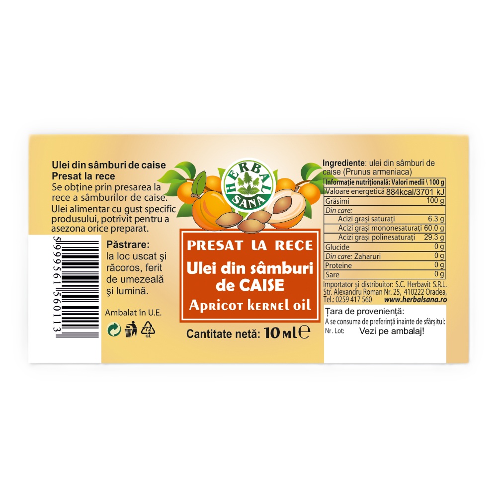 Informatii utile despre Ulei din samburi de caise, 10 ml, Herbavit gasiti in articolele: Uleiuri esentiale.