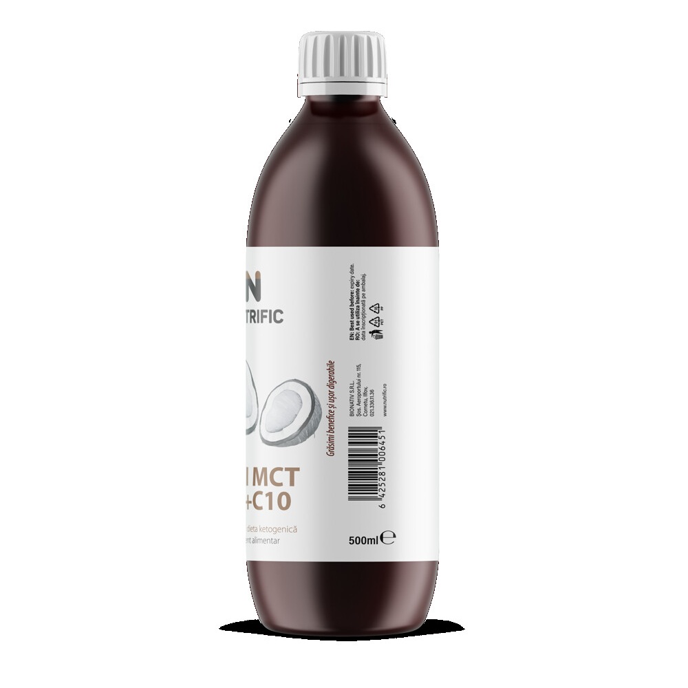- Acidul caprilic si acidul capric, componente majore ale uleiului MCT, pot avea proprietati antimicrobiene ajutand la echilibrarea microbiomului intestinal;
