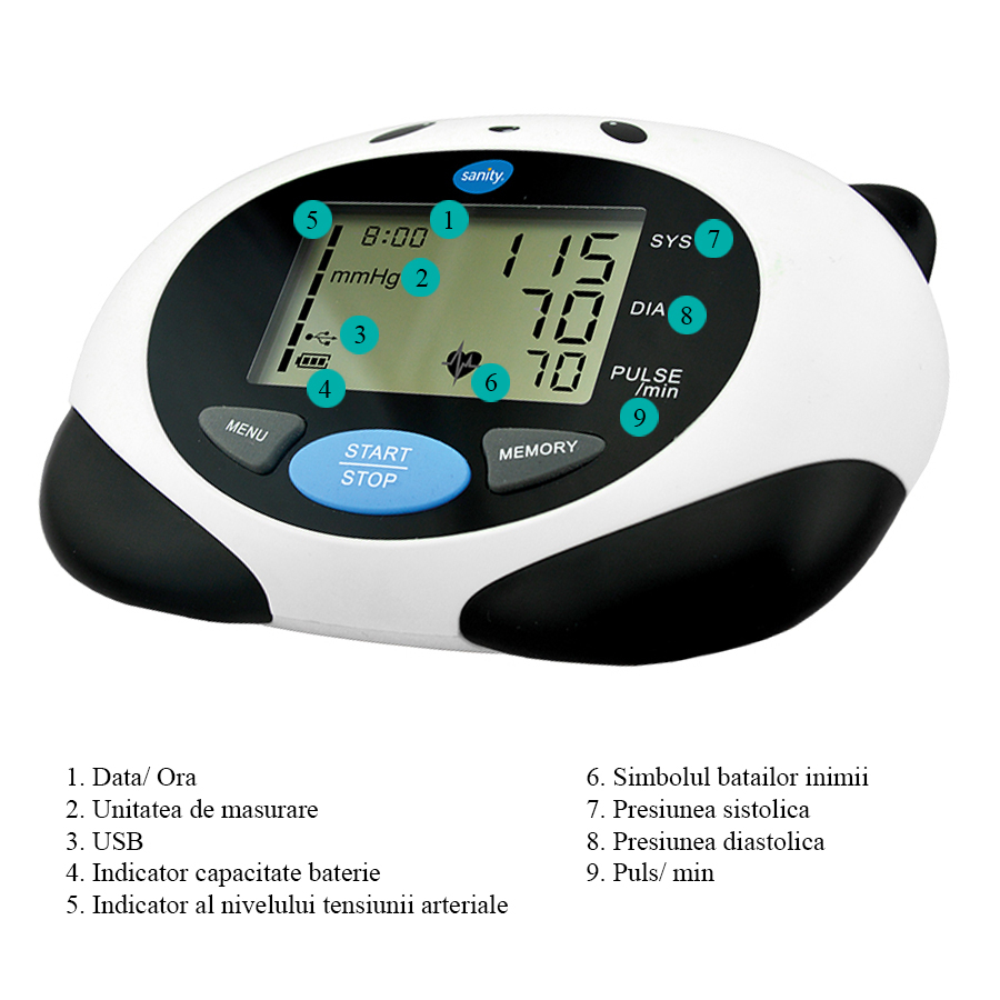 - designul prietenos in forma de urs panda ajuta la reducerea anxietatii copilului in timpul masurarii;