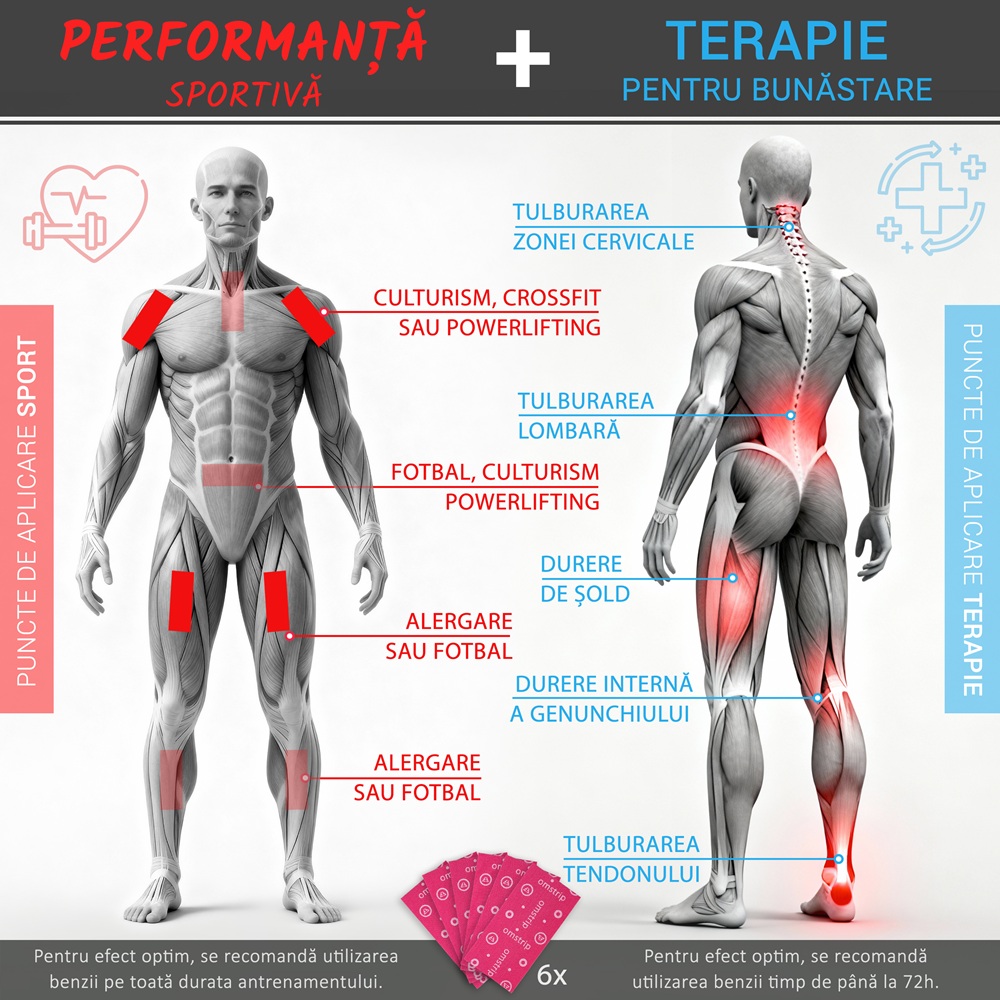 - combate durerea si optimizeaza efortul muscular in partile corpului unde este aplicat;