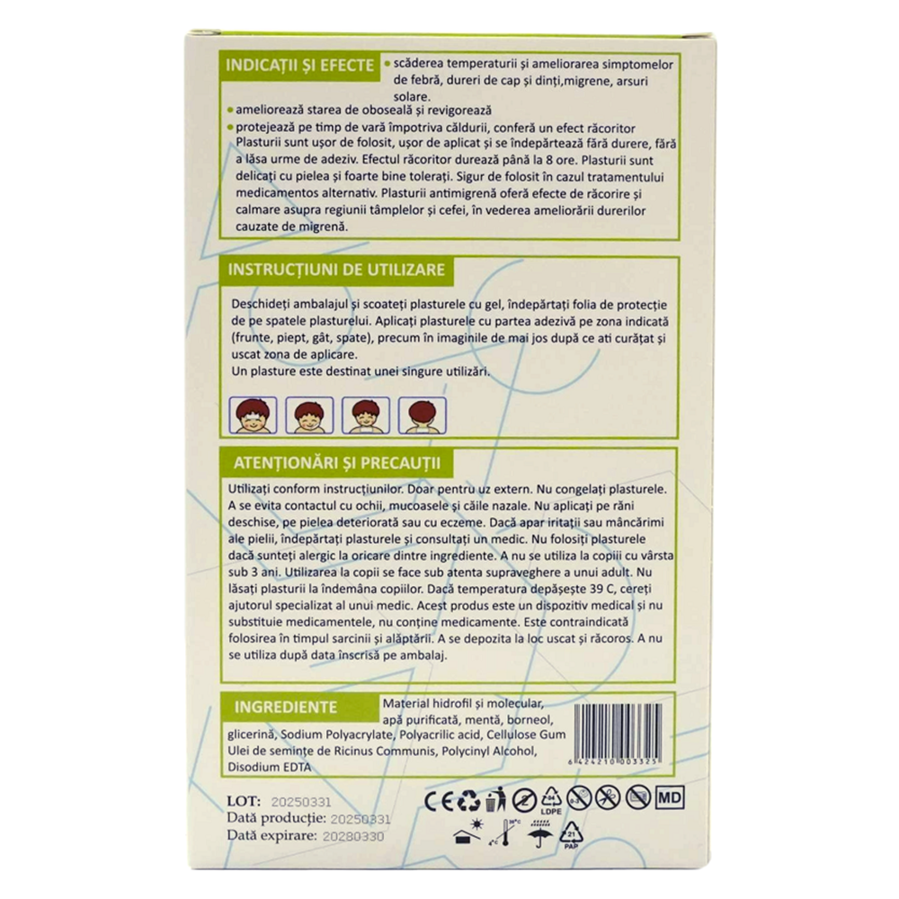 Aplicati plasturele cu partea adeziva pe zona indicata (frunte, piept, gat, spate), precum in imaginile de mai jos dupa ce ati curatat si uscat zona de aplicare.