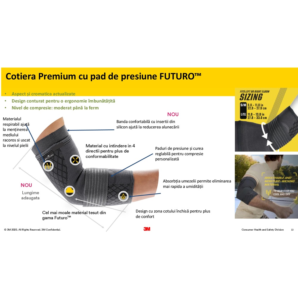 - utilizare: oferă compresie și suport pentru cot slăbit, accidentat sau dureros;