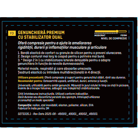 - utilizare recomandată: oferă compresie și suport pentru genunchiul slăbit, accidentat sau dureros;