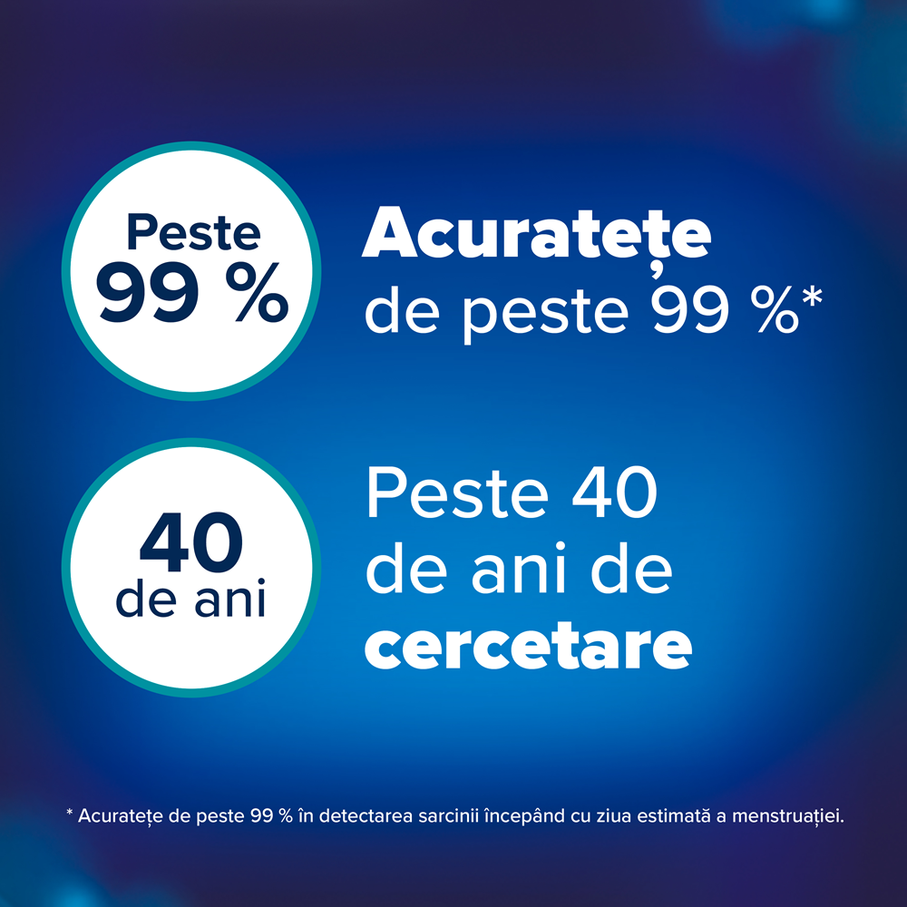 - ofera un rezultat „sarcina prezenta” in doar 1 minut, daca testul este efectuat din ziua menstruatiei intarziate;