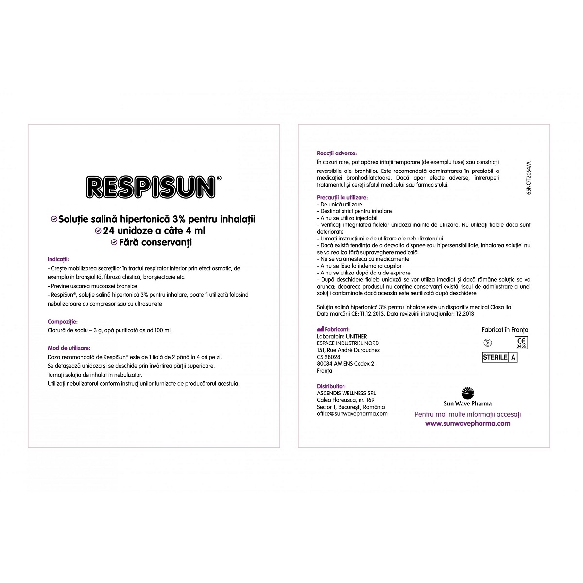 – RespiSun, soluție salină hipertonică 3% pentru inhalare, poate fi utilizată folosind nebulizatoare cu compresor sau cu ultrasunete.