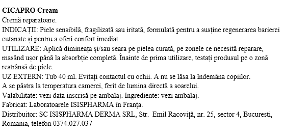 - Cicapro Cream este o crema reparatoare destinata pielii sensibile, fragilizate sau iritate, formulata pentru a sustine regenerarea barierei cutanate si pentru a oferi confort imediat;