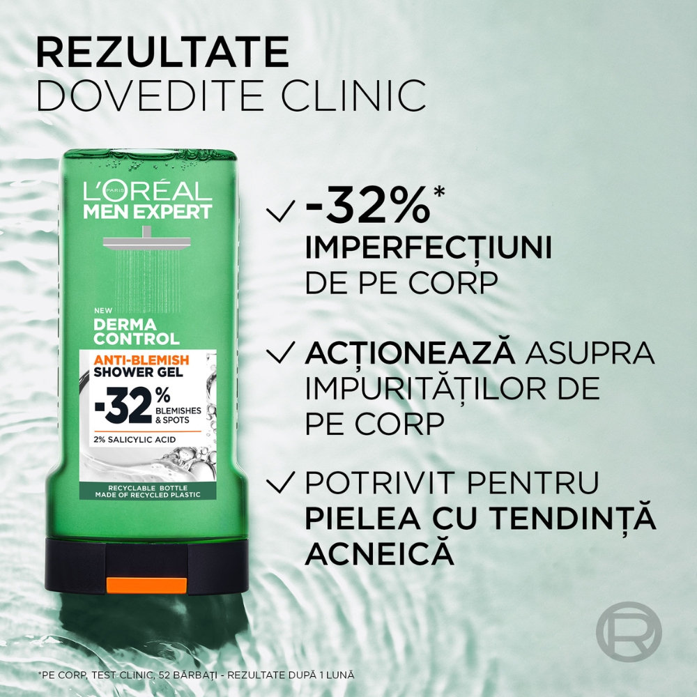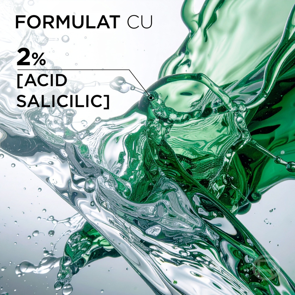 - formulat cu o concentratie puternica de 2% acid salicilic, ingredient recunoscut dermatologic pentru proprietatile sale de purificare, pentru a reduce imperfectiunile si cosurile de pe corp;