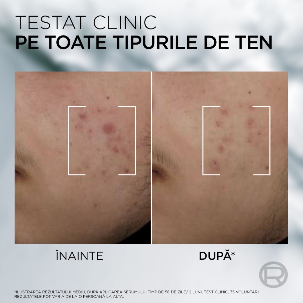 Ingrediente active:Serumul anti-imperfectiuni Men Expert Derma Control estompeaza aspectul semnelor post-acneice, datorita formulei imbogatite cu 3% Niacinamida si Acid Salicilic.