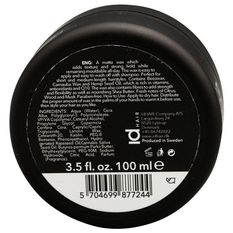 Confera parului fixare puternica, fara a incarca parul. Ceara este usor de indepartat. Perfecta pentru parul scurt si mediu. Contine ceara de albine, ceara de carnauba si ulei din seminte de canepa, bogat in vitamine, antioxidanti si Q10. Ceara contine fibre pentru a adauga rezistenta si flexibilitate si unt de shea pentru hidratare. Note proaspete de citrice, lemn si mosc.