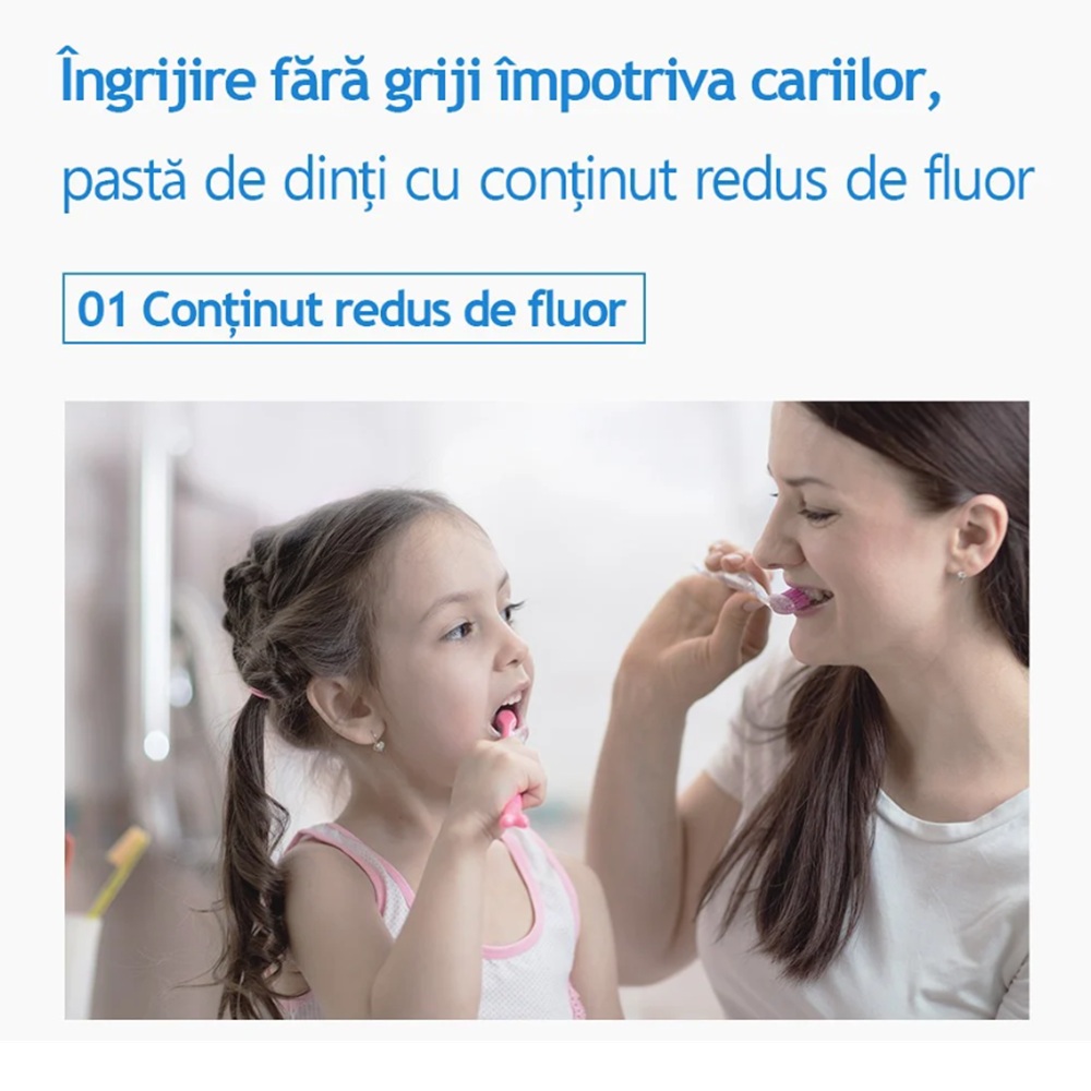 - pasta de dinti special formulata pentru copii, cu o aroma delicioasa de afine;