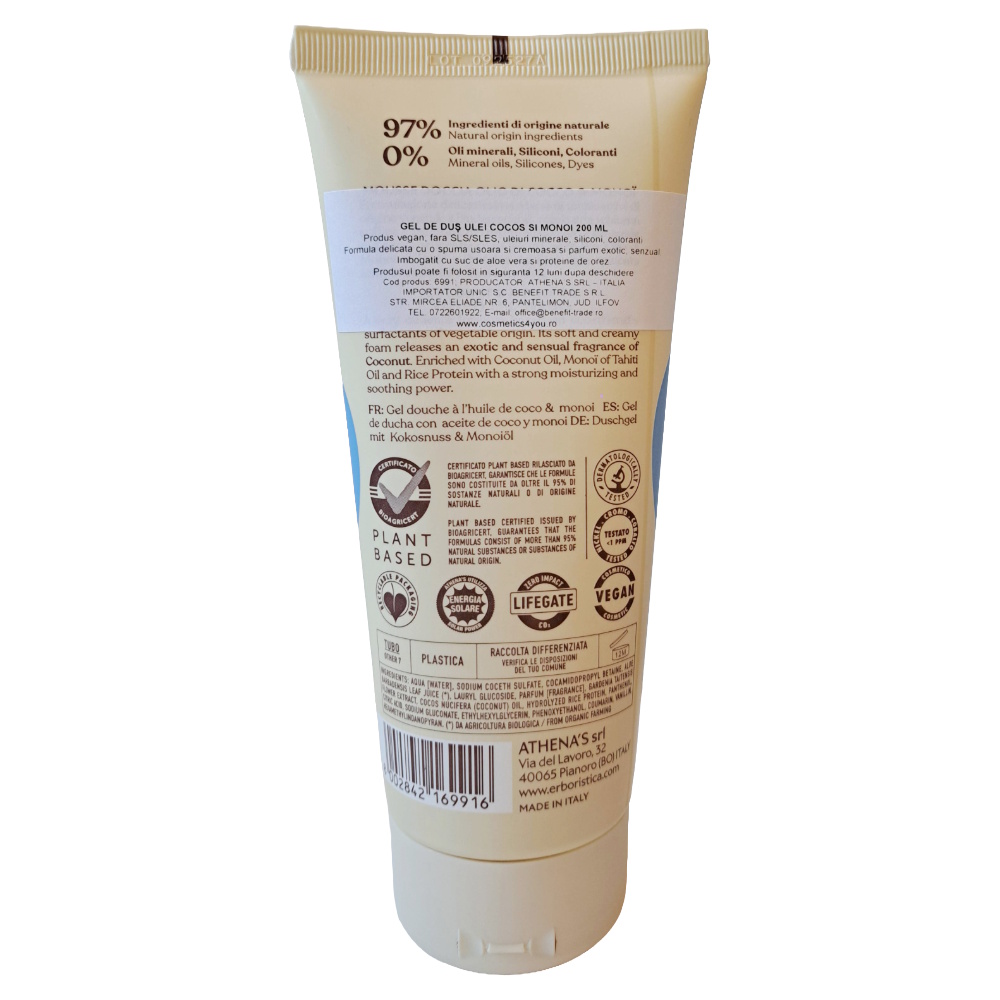 - produs vegan, fara SLS/SLES, uleiuri minerale, siliconi si coloranti;