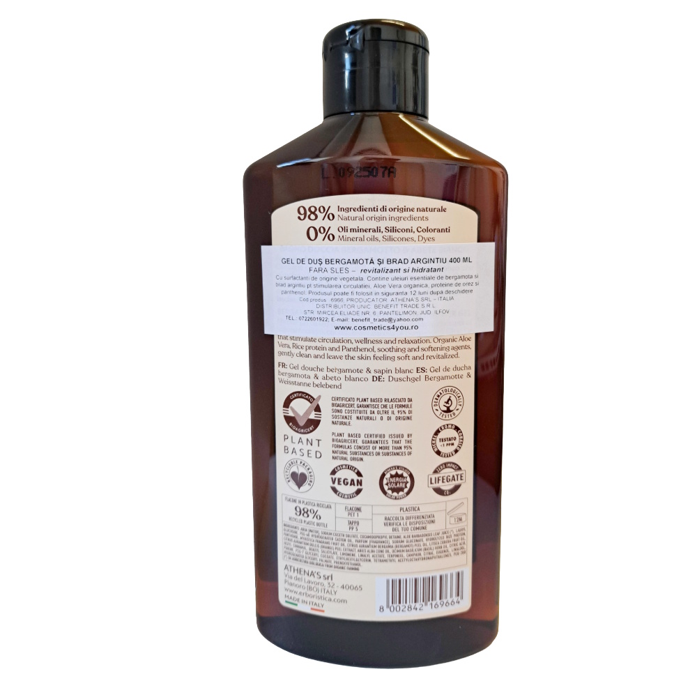 Aqua [Water], Sodium coceth sulfate, Cocamidopropyl betaine, Aloe barbadensis leaf juice (*), Lauryl glucoside, PEG-40 hydrogenated castor oil, Parfum [Fragrance], Sodium gluconate, Hydrolyzed rice protein, Panthenol, Myristica fragrans fruit oil, Citrus aurantium bergamia (Bergamot) peel oil, Litsea cubeba fruit oil, Citrus aurantium dulcis (Orange) peel extract, Abies alba cone oil, Ocimum basilicum (Basil) herb oil, Citric acid, Hexyl cinnamal, Benzyl salicylate, Limonene, Linalyl acetate, Terpineol, Camphor, Citral, Eugenol, Linalool, Pinene, PEG-7 glyceryl cocoate, Ethylhexylglycerin, Tetramethyl acetyloctahydronaphthalenes, PEG-200 hydrogenated glyceryl palmate, Phenoxyethanol.