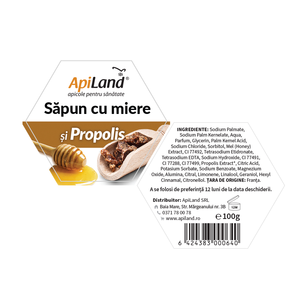 Palmat de sodiu, Kemelate, Apă, Parfum, Glicerină, Palm Kernel Acid, Clorură de sodiu, Sorbitol, Miere,Tetrasodic EDTA, Tetrasodic Etidronate, Extract de ceară și propolis, Alcool etilic, CI77491 (oxid de fier), CI77499 (oxid de fier), Citral, Citronellol, D-Limonen, Geraniol, Hexil Cinnamal, Linalol.