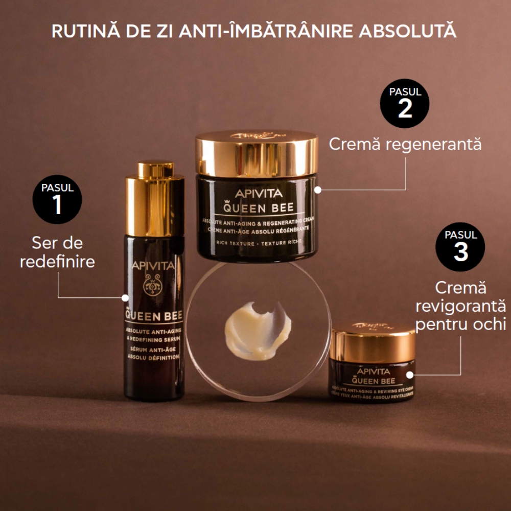 Pentru un tratament intensiv, aplicati serul Queen Bee urmat de crema Queen Bee.