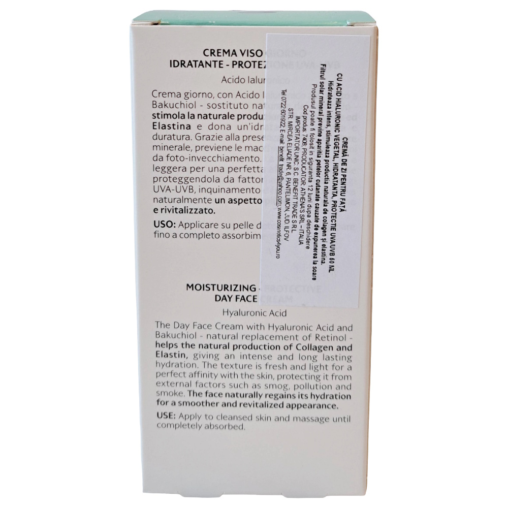 Ingrediente:Aqua [Water], Dicaprylyl ether, Glycerin, Betaine, Hydrolyzed soy extract, Butyrospermum parkii (Shea butter), Cetearyl alcohol, Glyceryl stearate, Bakuchiol, Sodium hyaluronate, Rosa canina fruit extract(*), Viola tricolor extract(*), Verbena officinalis extract(*), Tocopherol, Centaurium erythraea extract(*), Sorbitol, Calluna vulgaris extract(*), Hydrolyzed wheat protein, Tocopheryl acetate, Titanium dioxide (nano) [Titanium dioxide], Hydrolyzed olive fruit(*), Lysine, Carrageenan, Fucus vesiculosus extract, Allantoin, Sodium PCA, Camelina sativa seed oil, Sodium stearoyl lactylate, Ethylhexyl stearate, Panthenol, Sodium lauroyl glutamate, Xanthan gum, Polyhydroxystearic acid, Lactic acid, Olus oil [Olus], Urea, Sodium gluconate, Parfum [Fragrance], Silica, Phenoxyethanol, Sodium polyacrylate, Benzoic acid, Dehydroacetic acid, Trideceth-6, Ethylhexylglycerin, Citral, Limonene, Linalool.