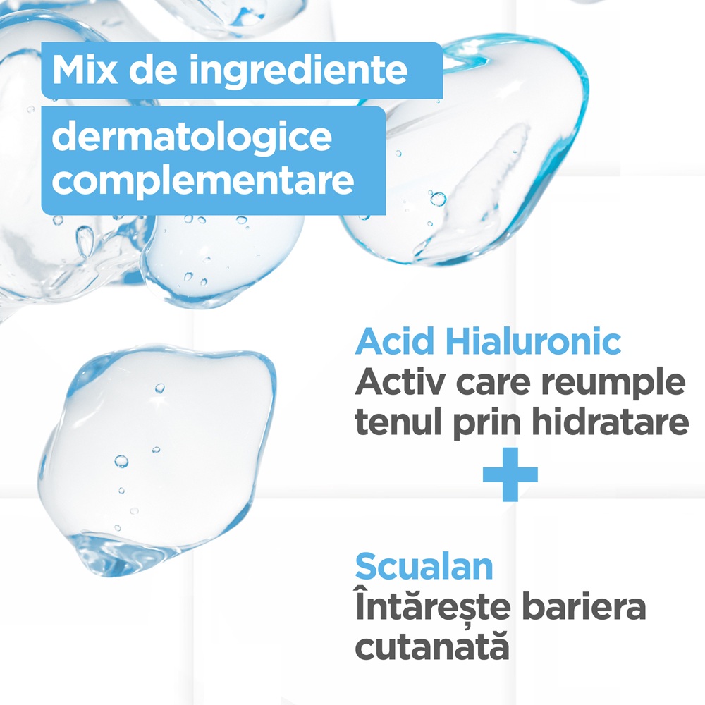 - acidul hialuronic hidrateaza intens si combate uscaciunea tenului;