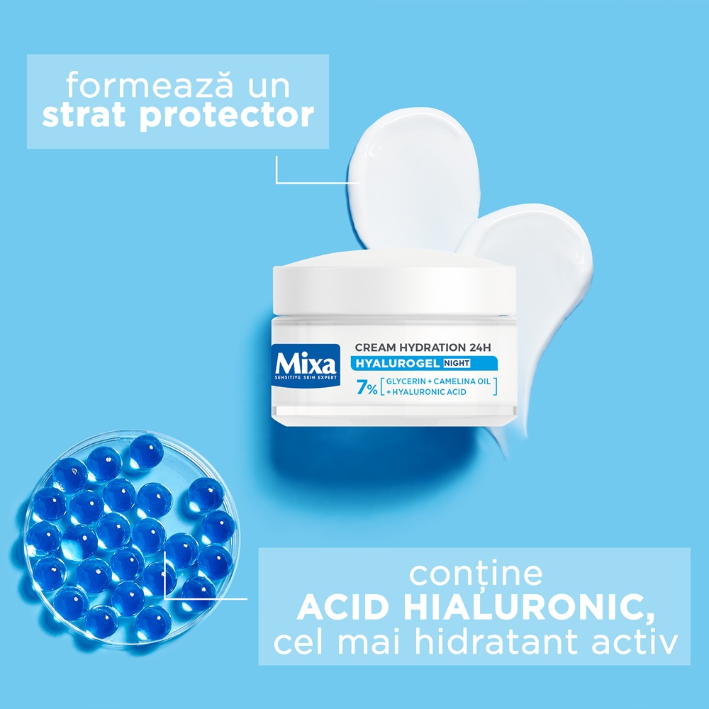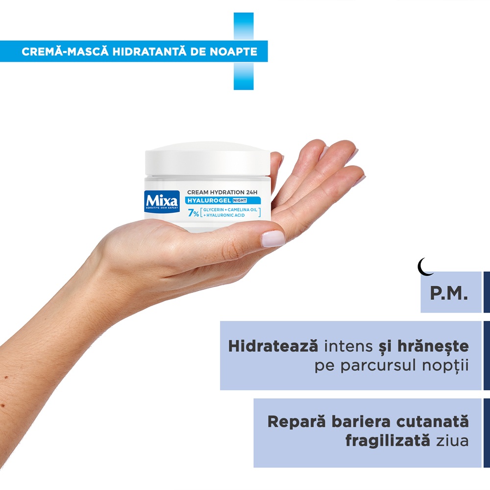 - pielea este hidratata pe tot parcursul noptii, conferindu-i un aspect catifelat, luminos si reimprospatat;