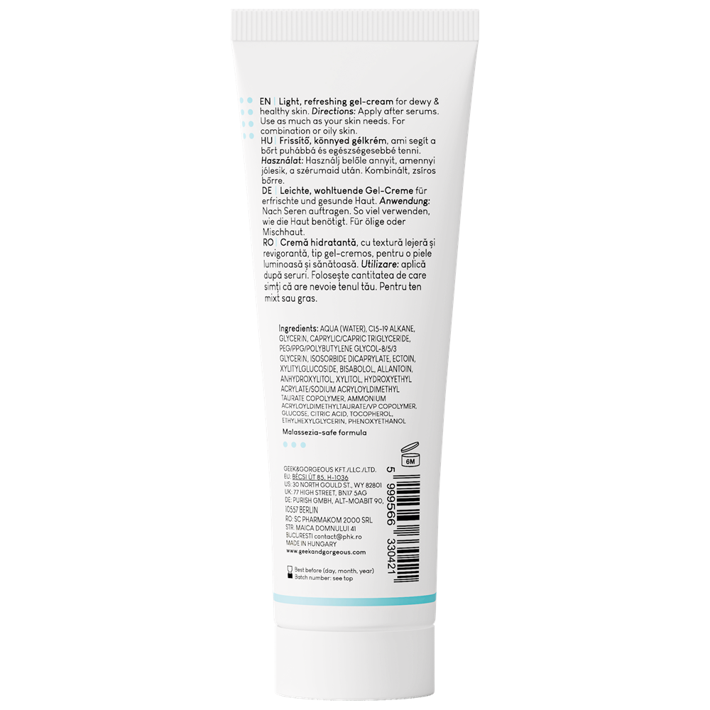 - emulsie ușoară și răcoritoare cu textură de cremă/gel;
