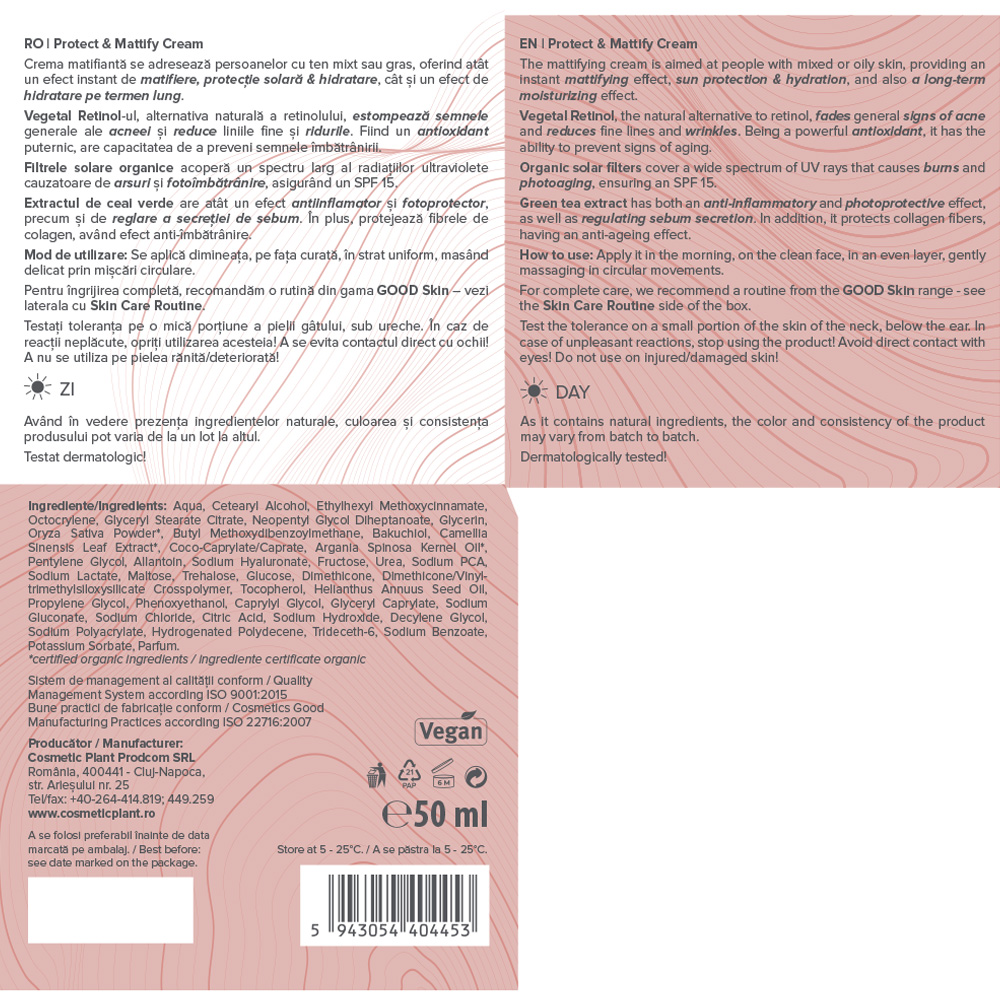 - se adreseaza persoanelor cu ten mixt sau gras, oferind atat un efect instant de matifiere, protectie solara si hidratare, cat si un efect de hidratare pe termen lung;