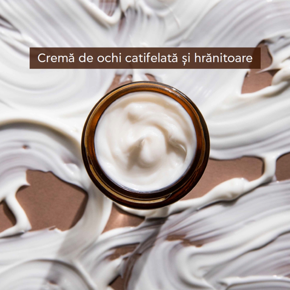 - aceasta crema de ochi cu textura matasoasa, este formulata cu doua tehnologii patentate cu eliberare controlata, care ofera pielii o difuzie foarte concentrata, continua si de lunga durata pentru a trata eficient toate semneleimbatranirii din zona ochilor;