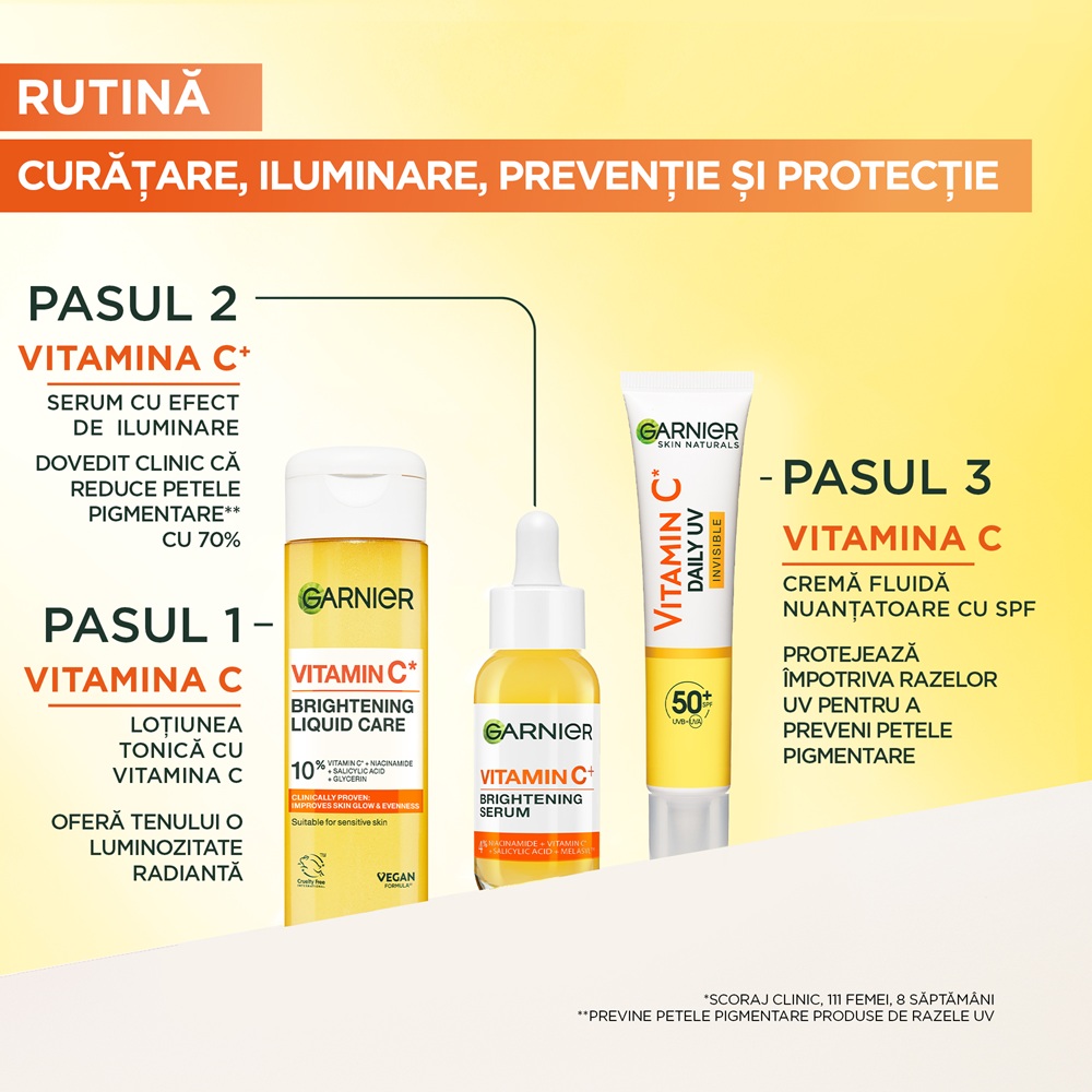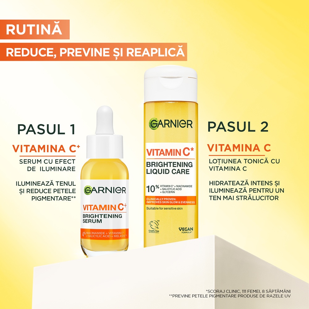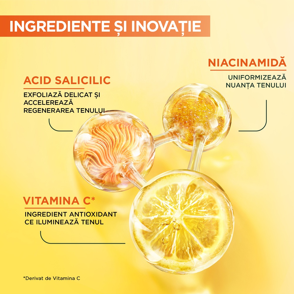 - vitamina C este cunoscuta pentru proprietatile sale antioxidante si capacitatea de a ilumina tenul;