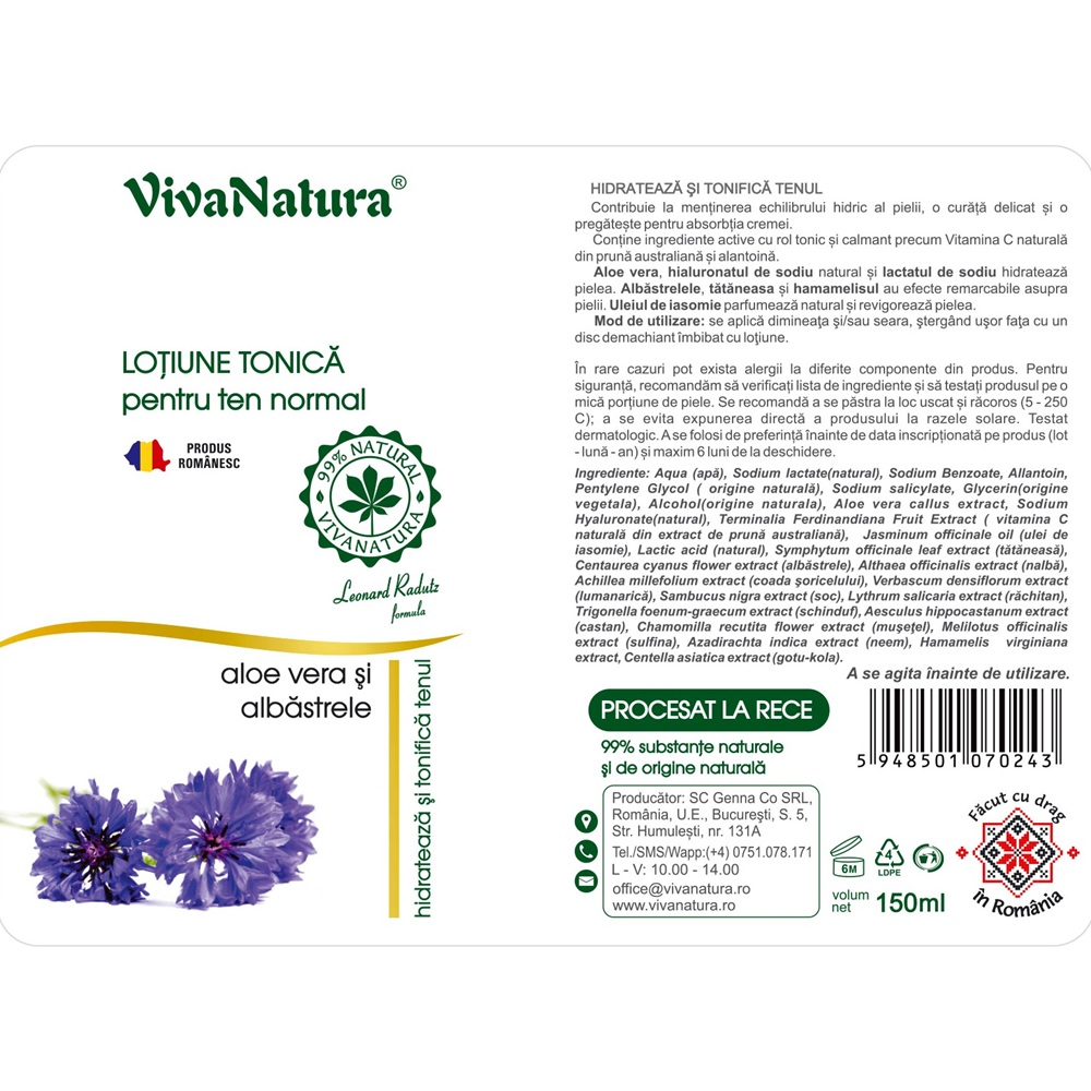 Lotiune tonica pentru ten normal, 150 ml, Vivanatura [5948501070243]