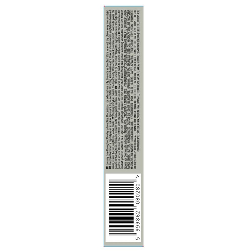 Hydrogenated Polyisobutene, Diisostearyl Malate, Butyrospermum Parkii (Shea) Butter, Hydrogenated Castor Oil Dimer Dilinoleate, Orbignya Oleifera (Babassu) Seed Oil, Microcrystalline Wax/Cera Microcristallina/Cire Microcristalline, Hydrogenated Poly (C6-14 Olefin), Caprylic/Capric Triglyceride, Ethylhexyl Palmitate, Polyglyceryl-2 Triisostearate, Mangifera Indica (Mango) Seed Butter, Glycerin, Hydrogenated Castor Oil, Palmitoyl Tripeptide-38, Hydroxypropyl Cyclodextrin, Sodium Hyaluronate, Tocopheryl Acetate, Aqua, Ricinus Communis (Castor) Seed Oil, Citric Acid.