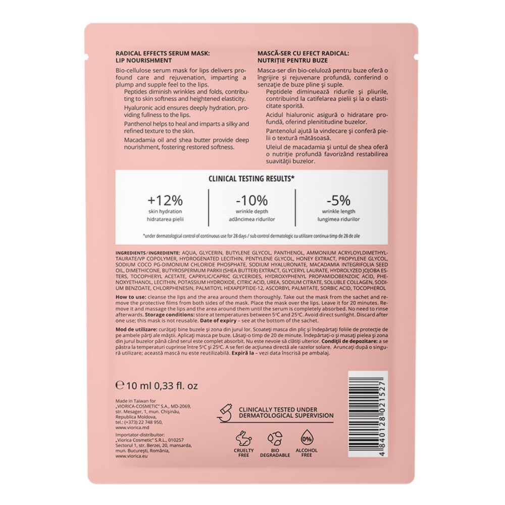 - masca-ser din bio-celuloza pentru buze ofera o ingrijire si rejuvenare profunda, conferind o senzatie de buze pline si suple;