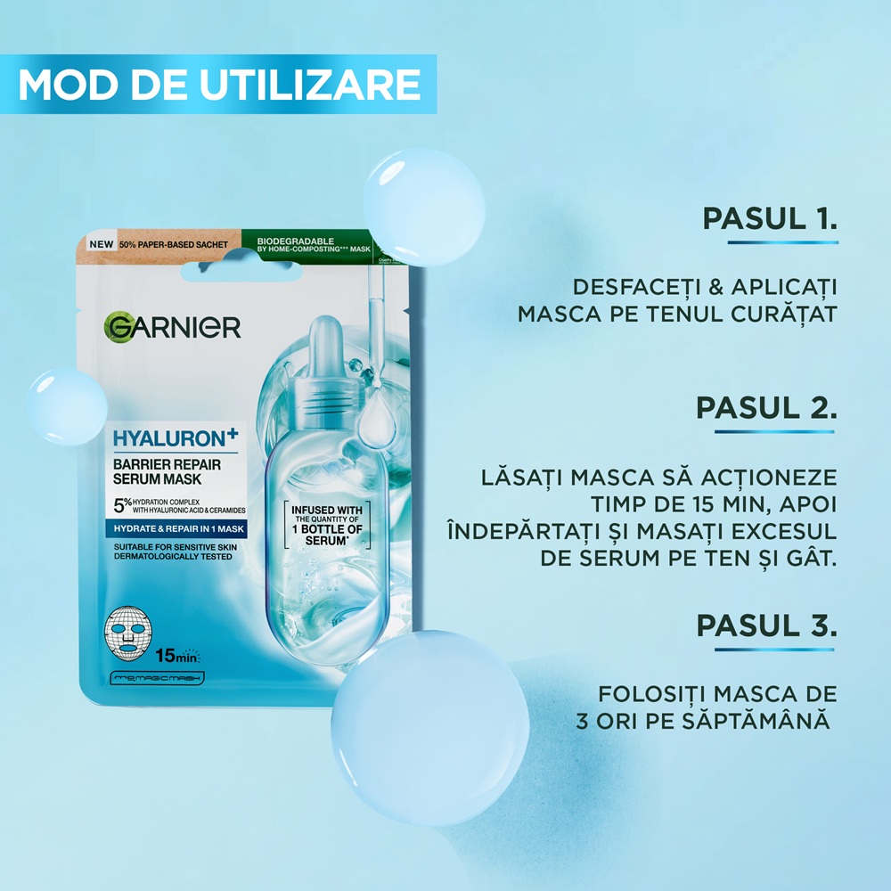 Pentru rezultate optime, includeti o masca servetel in rutina de ingrijire de 3 ori pe saptamana.