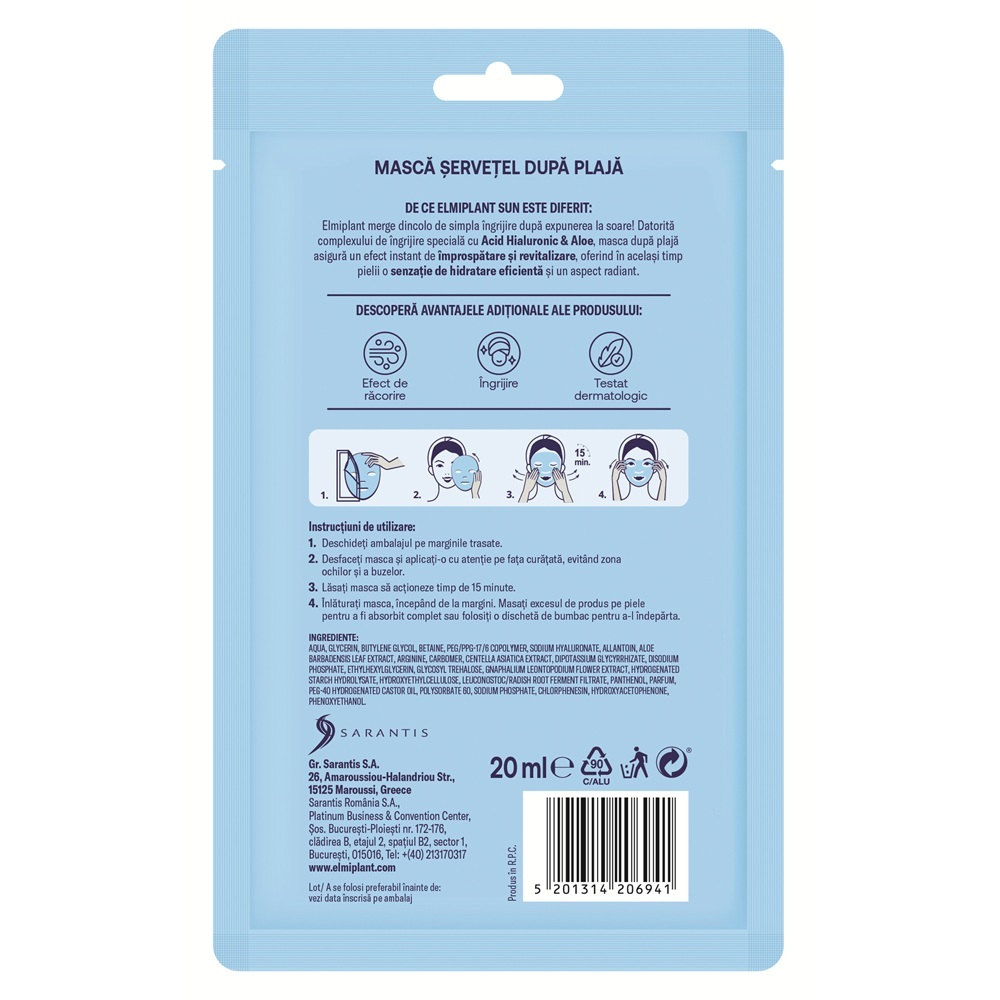Desfaceti masca si aplicati-o cu atentie pe fata curatata, evitand zona ochilor si a buzelor.