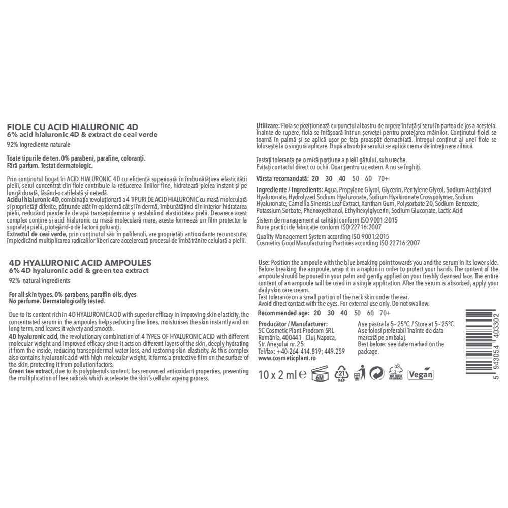 Fiole cu 6% acid hialuronic 4D FaceCare, 10 fiole x 2 ml, Cosmetic Plant