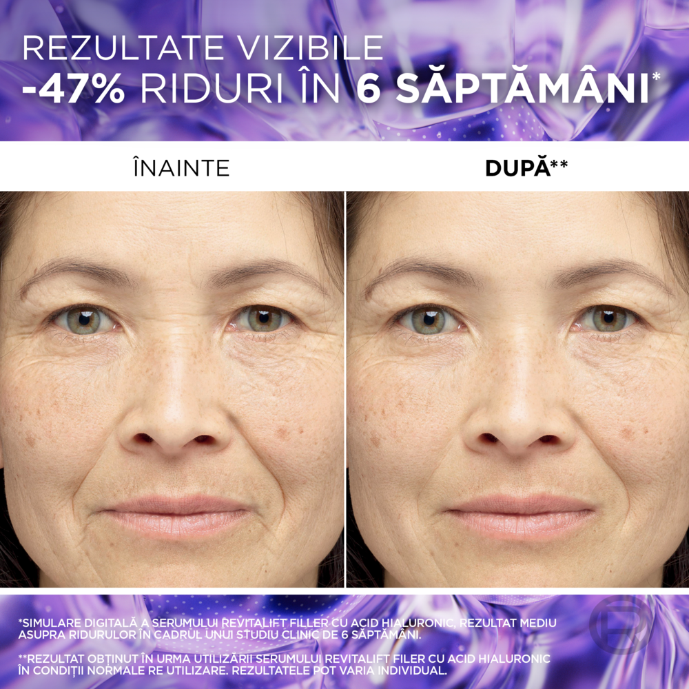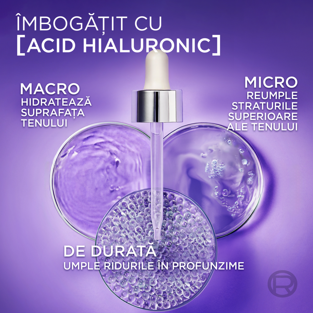 - 1% micro acid hialuronic, care datorita masei moleculare mici patrunde in straturile superioare ale epidermei pentru a umple ridurile;