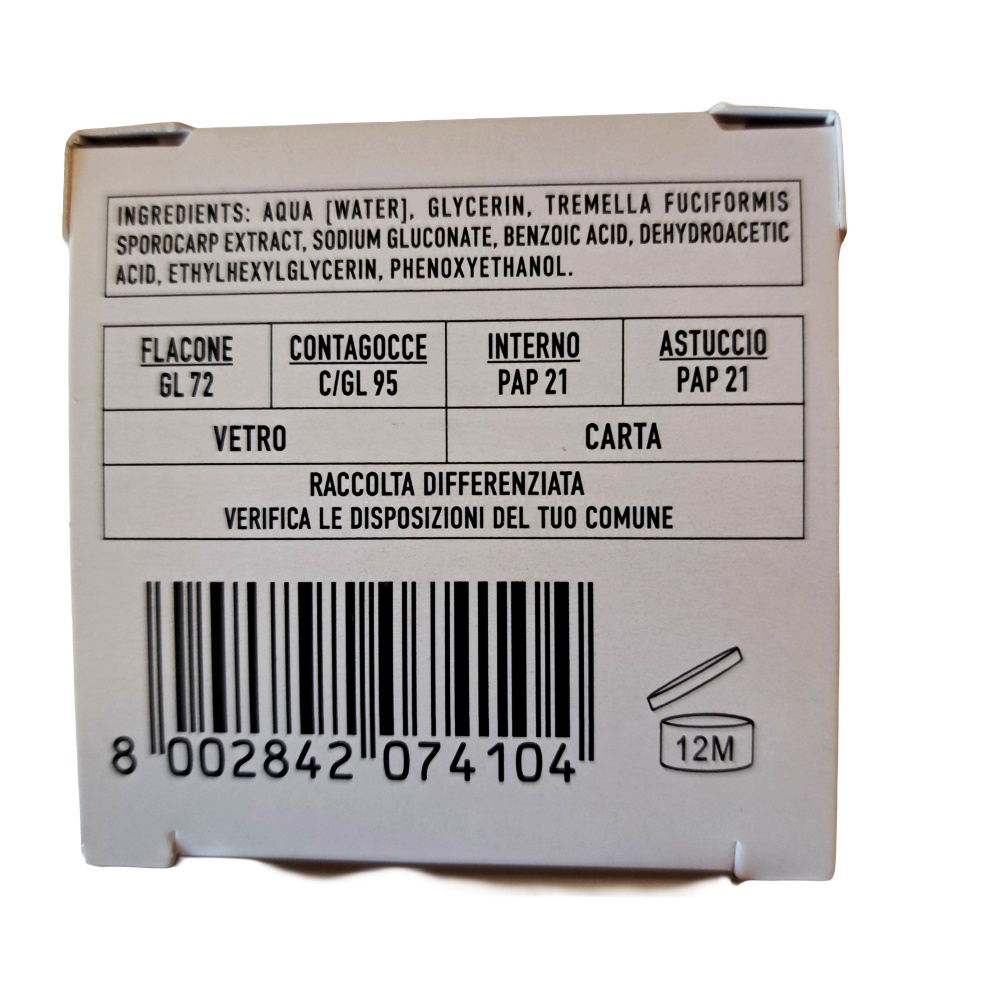 Aqua [Water], Glycerin, Tremella fuciformis sporocarp extract, Sodium gluconate, Benzoic acid, Dehydroacetic acid, Ethylhexylglycerin, Phenoxyethanol.