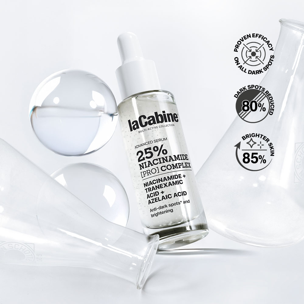Niacinamida ingredient multifunctional, reduce petele pigmentare, inhiba transferul de melanina, uniformizeaza tonul pielii, imbunatateste bariera cutanata.