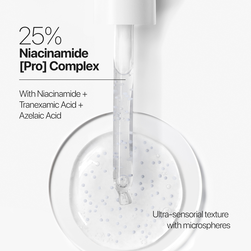 Aqua (Water), Butylene Glycol, Niacinamide, Propanediol, Dimethicone, Alcohol Denat., Tranexamic Acid, Betaine, Cystoseira Tamariscifolia Extract, Glycerin, Tocopheryl Acetate, Sodium Gluconate, Cetearyl Dimethicone Crosspolymer, Mannitol, Hydroxypropyl Methylcellulose, T-butyl Alcohol, Sodium Polyacryloyldimethyl Taurate, Polyacrylate Crosspolymer-6, Hydroxyacetophenone, Microcrystalline Cellulose, Propylene Glycol, Azelaic Acid, Parfum (Fragrance), Peg-40 Hydrogenated Castor Oil, Trideceth-9, Dimethyl Phenethyl Acetate, Tetramethyl Acetyloctahydronaphthalenes.