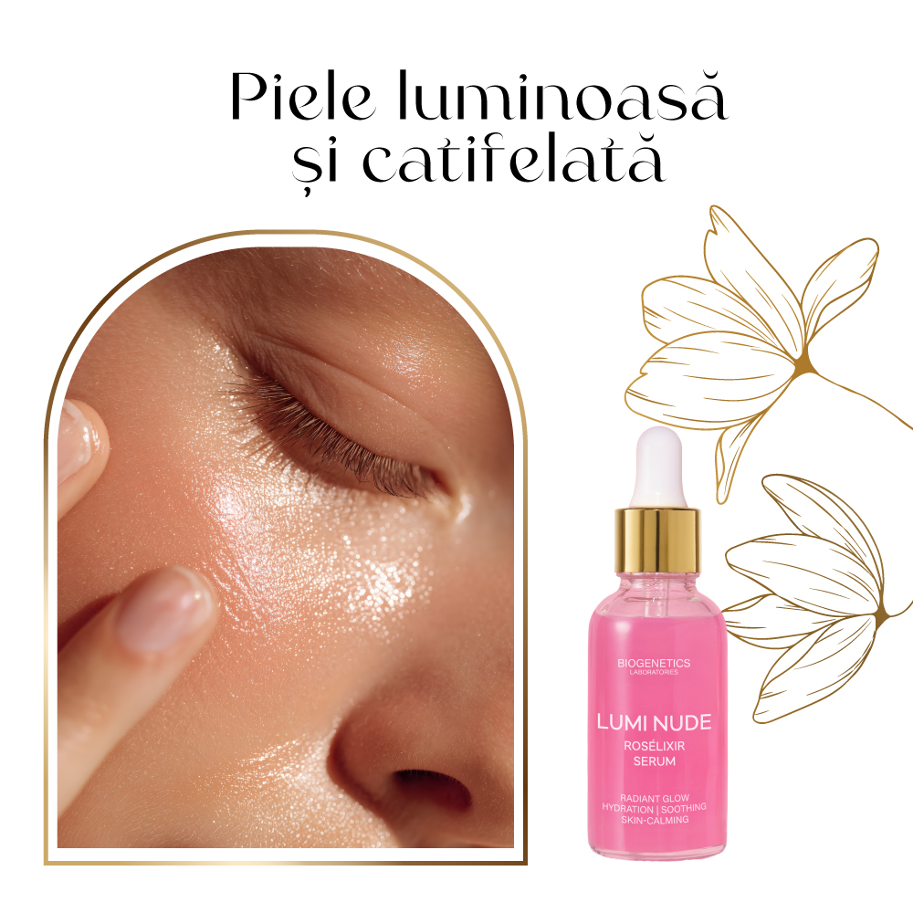 - formula sa inovatoare, imbogatita cu niacinamide, acid hialuronic si pantenol, revitalizeaza tenul, uniformizeaza textura si confera un glow subtil, delicat ca o petala de trandafir;