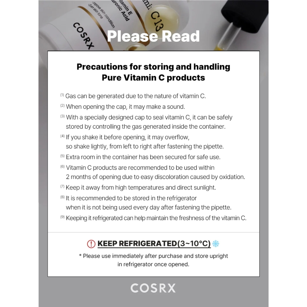 Pastrati produsele cu concentratie ridicata de vitamina C pura la frigider pentru a mentine prospetimea ingredientului activ Inchideti bine capacul (pipeta) dupa fiecare utilizare.
