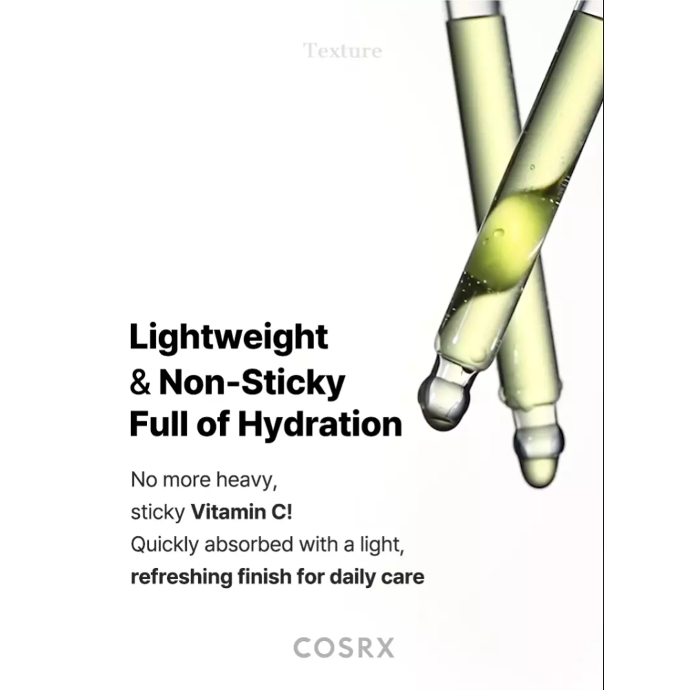Textura este una usoara, apoasa, non-lipicioasa, se absoarbe rapid. Nuanta este usor galbuie, indicand continutul de Vitamina C pura.