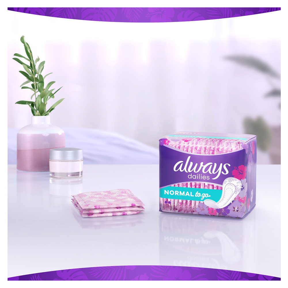 - absorbante zilnice ambalate individual Always Singles to go pentru prospetime zilnica oriunde;