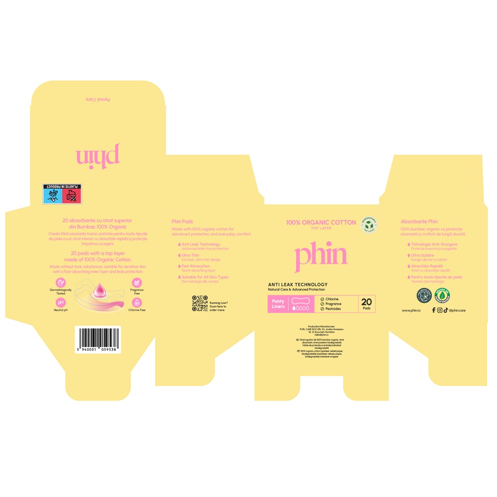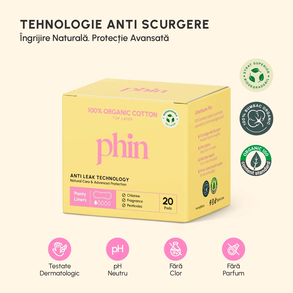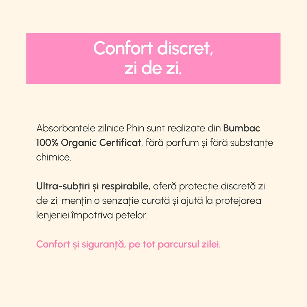 Absorbante zilnice din bumbac organic, 20 bucati, Phin [5940031059538]