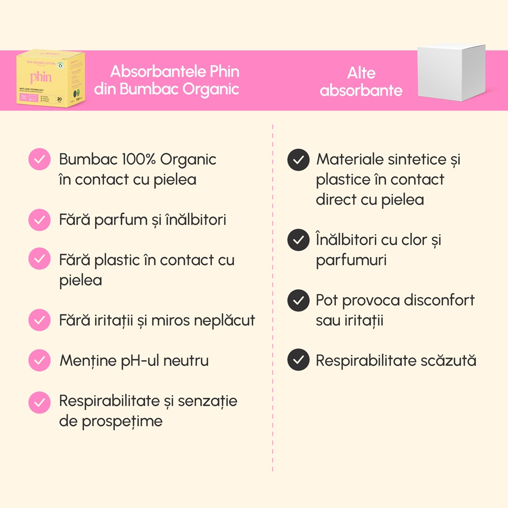 Cumpără oricare 2 produse Phin din lista selectată și primești 1 x Absorbante de zi din Bumbac Organic 20 bucati.