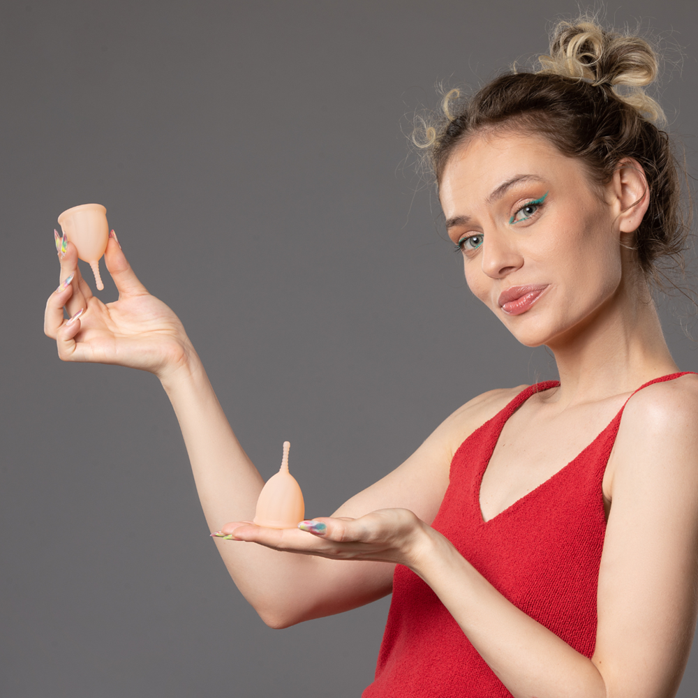 Dupa ce cupa este complet introdusa, elibereaz-o pentru a se deschide si a se sigila prin crearea unui vid delicat cu peretii vaginali.