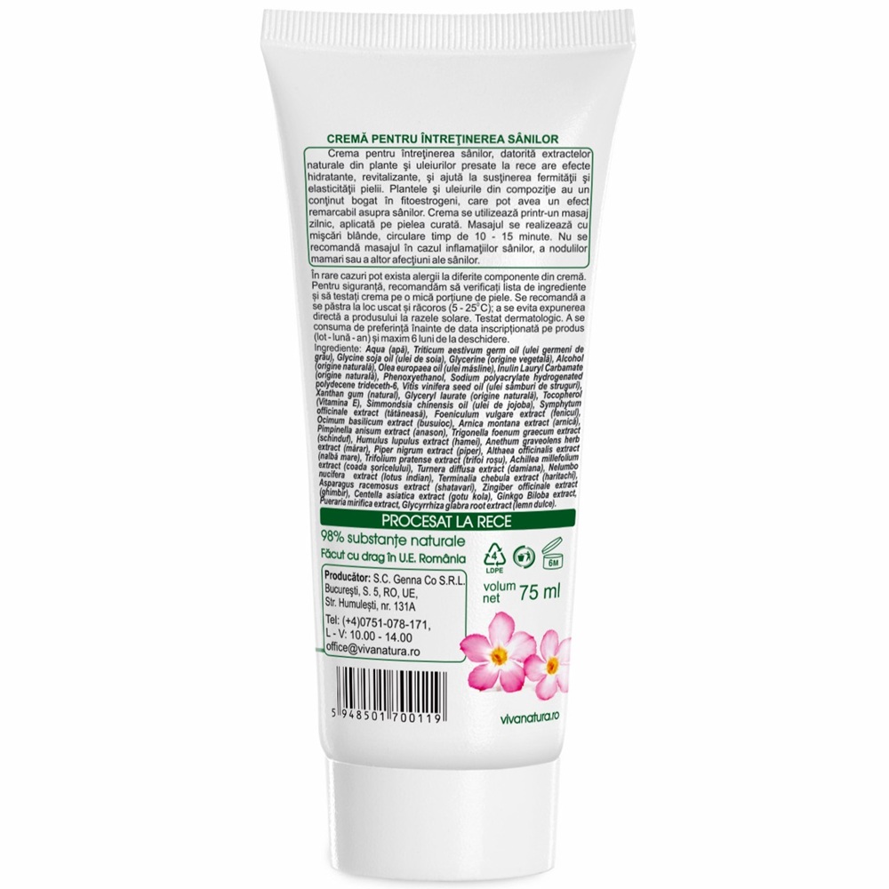 În compoziția cremei se regăsesc și alte ingrediente care contribuie la întreținerea și creșterea sânilor, cum ar fi: schinduful, pueraria, lemnul dulce.